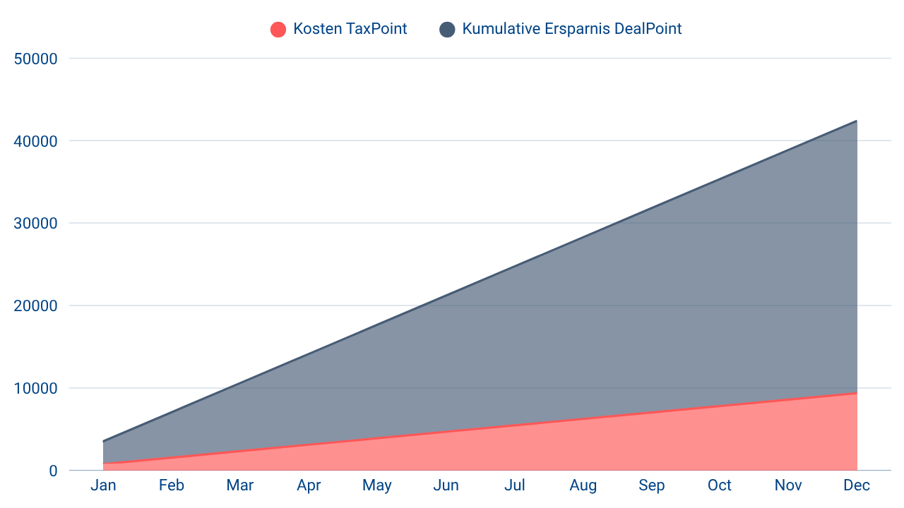• Kumulative Kosten DealPoint Professional (8 GB, 12 Monate): 9 372 €