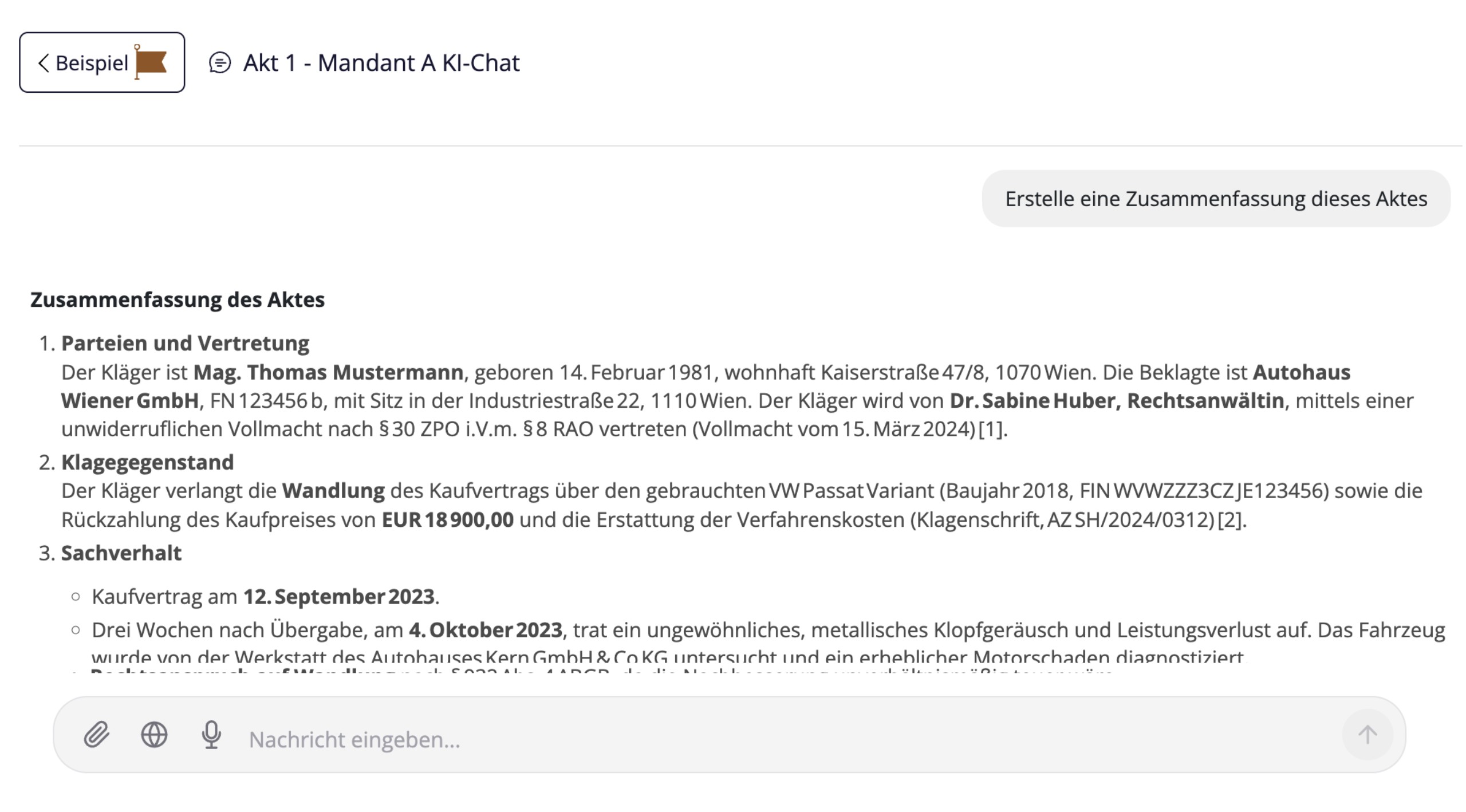 DOCPIT AI generates responses, text modules, outlines, or email drafts. This is done exclusively based on existing files —not on external "knowledge from the internet."